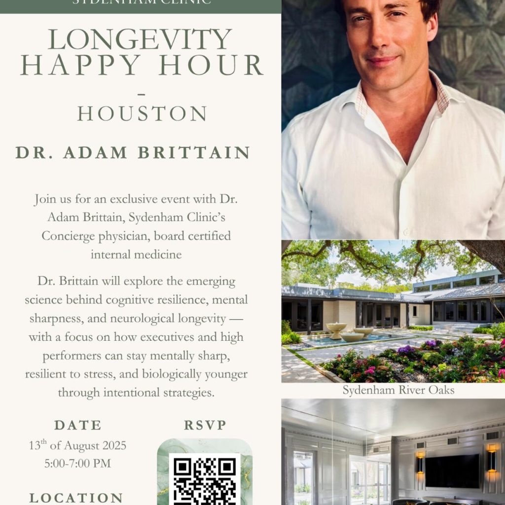Join us for an exclusive event with Dr. Adam Brittain, Sydenham Clinic’s Concierge physician, board certified internal medicine. He will explore the emerging since …