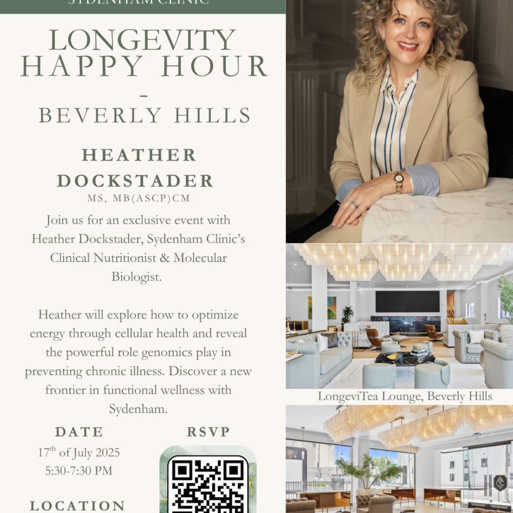 Join us for an exclusive event with Heather Dockstader, Sydenham Clinic’s Clinical Nutritionist & Molecular Biologist. Heather will explore how to optimize energy…